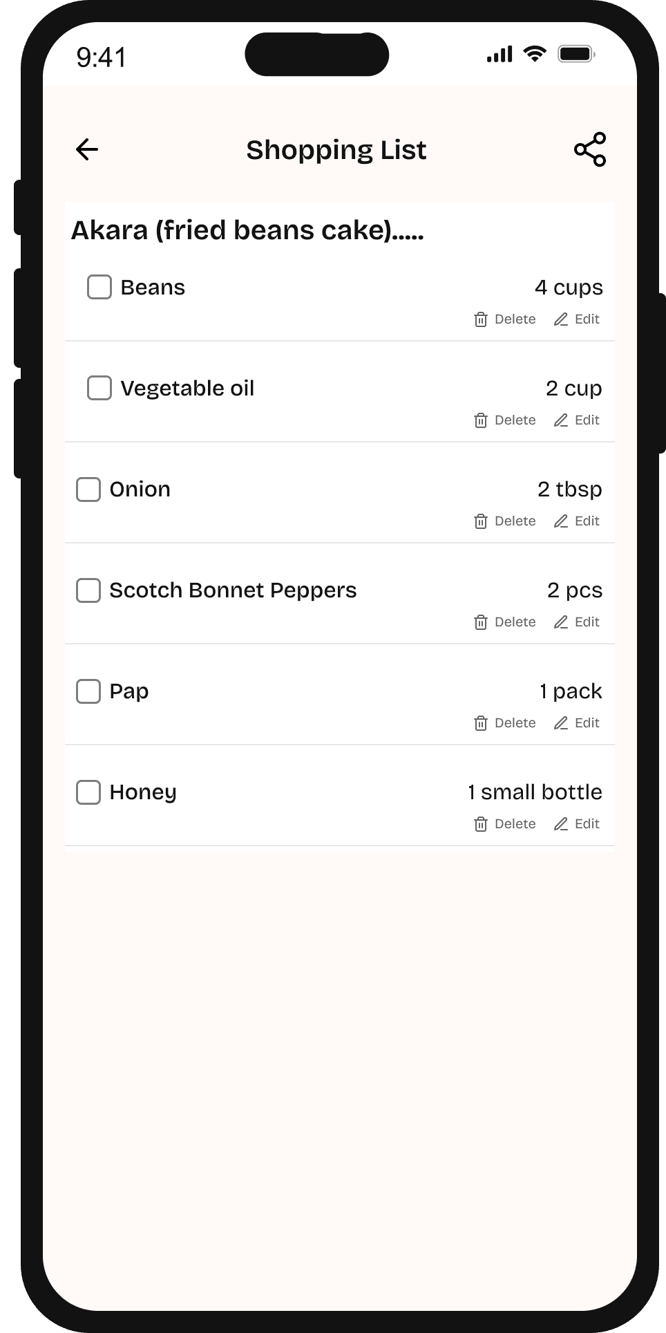 No more forgotten ingredients or overspending! The app automatically generates a shopping list based on your selected meals. This helps you stay on budget, reduce waste, and shop faster at the market or grocery store.